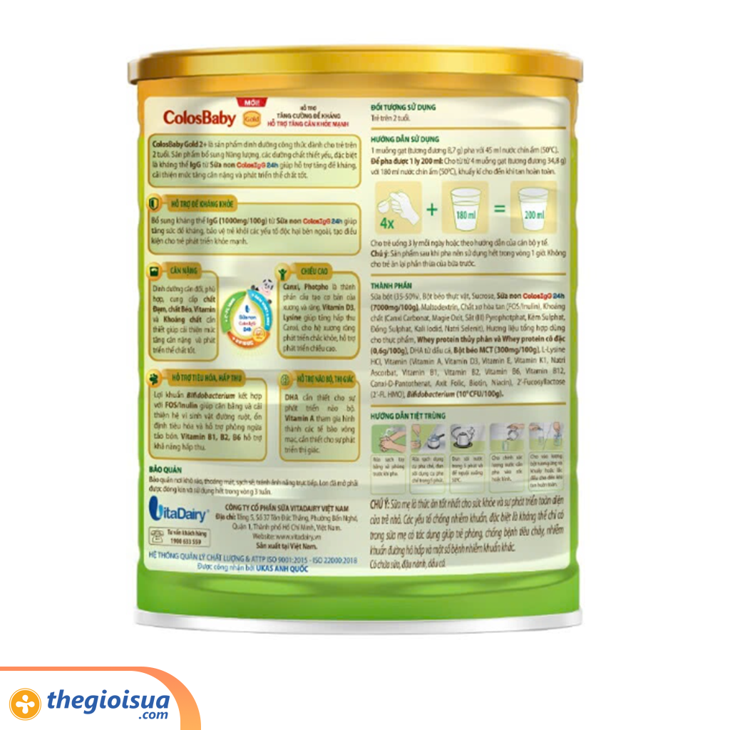 Sữa ColosBaby Gold 2+ bổ sung kháng thể IgG (1000mg/100g) từ sữa non ColosIgG 24h giúp tăng sức đề kháng, tạo điều kiện cho bé phát triển khoẻ mạnh.