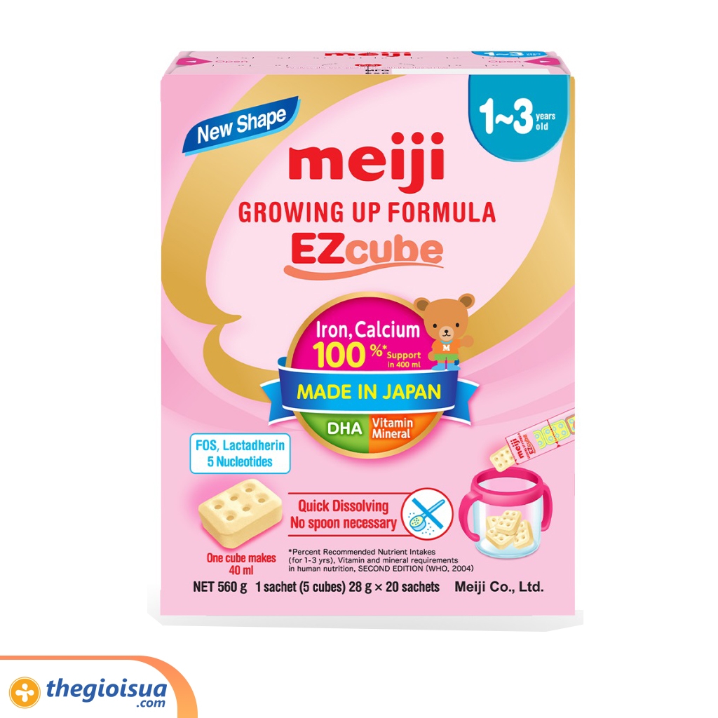 Sữa Meiji Ezcube Growingup Formula là dòng sữa được nhập khẩu từ Nhật Bản. Sữa được sản xuất trên công nghệ tiên tiến đầu tiên trên thế giới để mang đến những viên sữa bột hình lập phương giúp mẹ thuận tiện hơn trong việc pha sữa cũng như kiểm soát được lượng sữa bé đã dùng hay còn dư trong hộp.