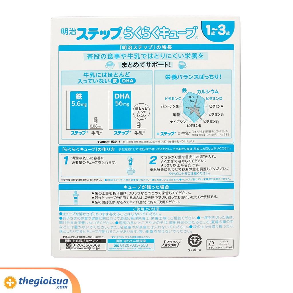 - Sữa Meiji dạng thanh cung cấp trên 70% nhu cầu vitamin và chất khoáng cho trẻ 1 - 3 tuổi/ngày theo khuyến nghị của FAO/WHO mang đến nguồn năng lượng và hệ dinh dưỡng cân bằng cho bé, tăng cường sức đề kháng để đảm bảo cho các hoạt động vui chơi trong ngày và một cơ thể khỏe mạnh.