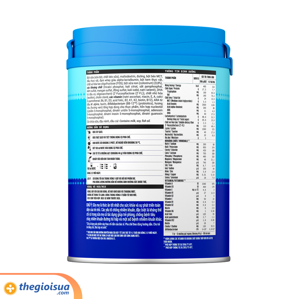Với nguồn sữa non 24h được nhập khẩu từ Mỹ chứa nhiều kháng thể, đặc biệt kháng thể IgG, cùng với HMO (2’-FL) - prebiotic có cấu trúc tương tự dưỡng chất được tìm thấy trong sữa mẹ, giúp hạn chế sự bám dính của các tác nhân gây nhiễm khuẩn lên thành ruột của trẻ, cùng chất xơ hòa tan FOS và Probiotics BB-12TM giúp tăng hệ vi khuẩn có lợi, hỗ trợ hệ tiêu hóa khỏe mạnh và tăng sức đề kháng.