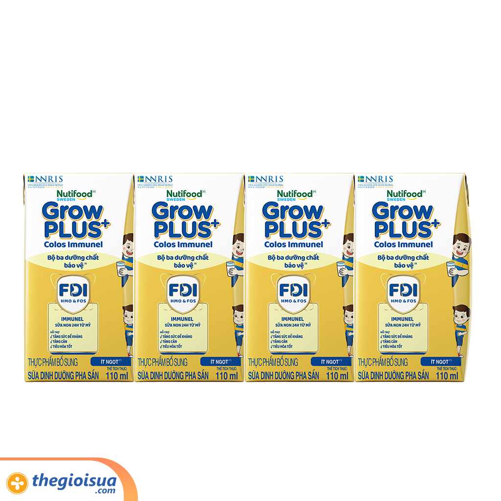 - Nutifood GrowPLUS+ Colos Immunel với công thức sữa do Nutifood Thụy Điển (NNRIS) phát triển, xây dựng nền tảng FDI đề kháng khỏe, tiêu hóa tốt giúp trẻ hấp thu tối ưu chất dinh dưỡng.