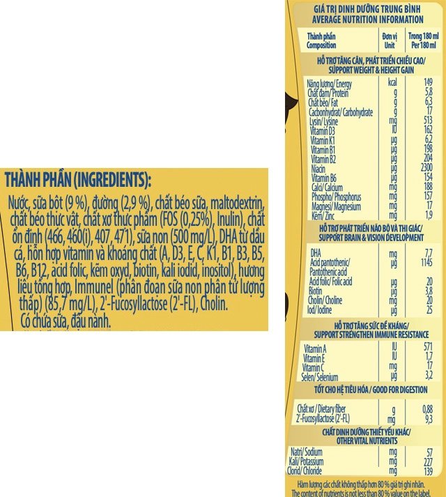 - Ngoài ra, sản phẩm còn chứa canxi, photpho, vitamin D3, kẽm giúp nuôi dưỡng hệ xương và răng chắc khỏe, đáp ứng nhu cầu phát triển chiều cao của các bé.