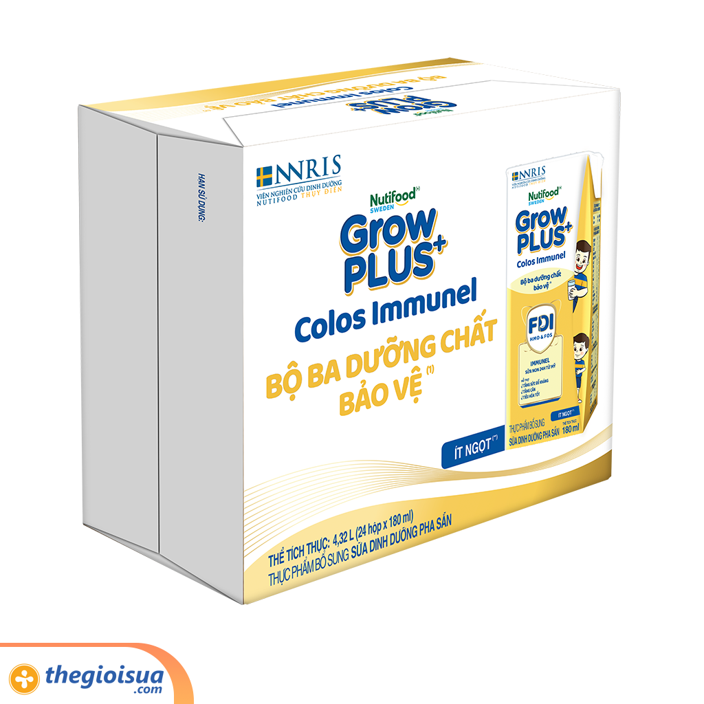 - Nutifood GrowPLUS+ Colos Immunel với công thức sữa do Nutifood Thụy Điển (NNRIS) phát triển, xây dựng nền tảng FDI đề kháng khỏe, tiêu hóa tốt giúp trẻ hấp thu tối ưu chất dinh dưỡng.