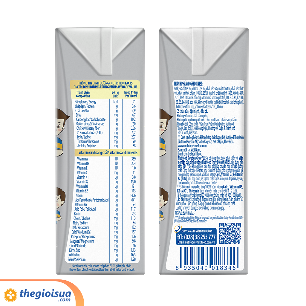 Sữa Pha Sẵn GrowPlus+ Height Boosting HG 110ml hương vị thơm ngon, dễ uống tối ưu cho thể trạng và nhu cầu dinh dưỡng đặc thù của trẻ em Việt Nam. Công thức đặc chế theo nhu cầu dinh dưỡng cho sự phát triển của trẻ trong những năm đầu đời, với hàm lượng Calci, Vitamin D3 & Vitamin K2 (MK7) phù hợp giúp hệ xương chắc khỏe, cùng với Arginin, Lysin, Threonin hỗ trợ phát triển chiều cao của trẻ.