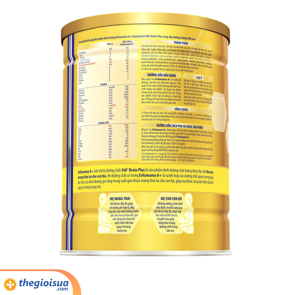 - Sản phẩm dinh dưỡng sữa bầu Enfamama A+ với hệ dưỡng chất 360° Brain Plus cải tiến cho mẹ một thời kỳ mang thai khỏe mạnh.