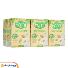 - Sữa đậu nành Fami nguyên chất ít đường 200ml đã cho ra đời dòng sản phẩm được làm từ 100% hạt đậu nành chọn lọc và không biến đổi gen. Nguồn năng lượng có trong fami nguyên chất là 57.6 kcal. Với hương vị thơm ngon, sánh mịn, cung cấp các dưỡng chất như: chất đạm, chất béo, chất xơ, cholesterol,...