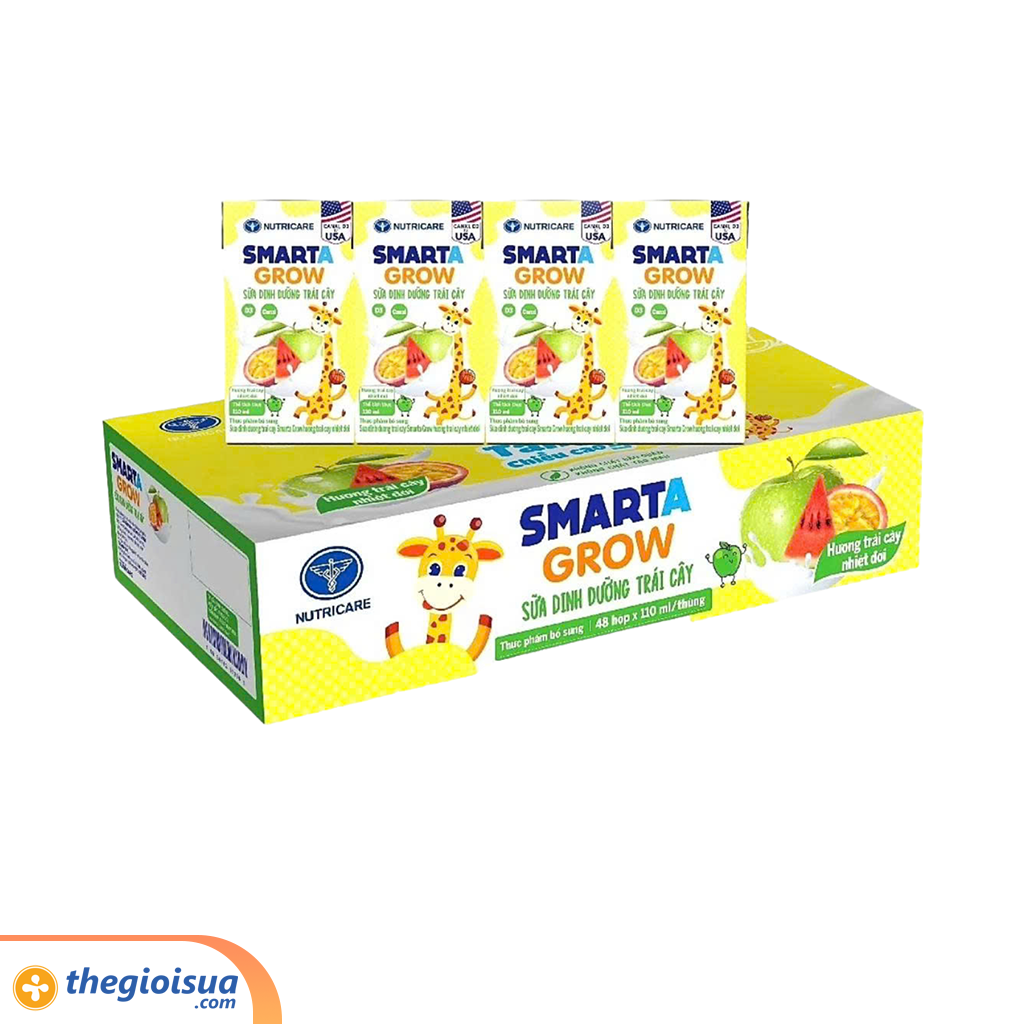 Sữa dinh dưỡng trái cây Nutricare Smarta Grow hương trái cây nhiệt đới (lốc 4 hộp x 110ml).