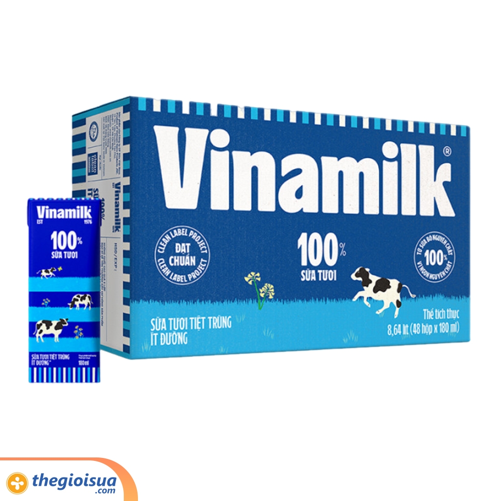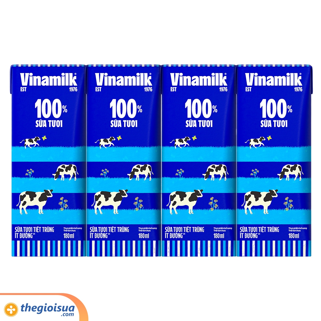 - Sữa tươi tiệt trùng Vinamilk 100% ít đường, ít năng lượng hơn, vị sữa tươi đậm đà hơn, thích hợp cho người muốn giảm cân, hạn chế calo cho cơ thể.
