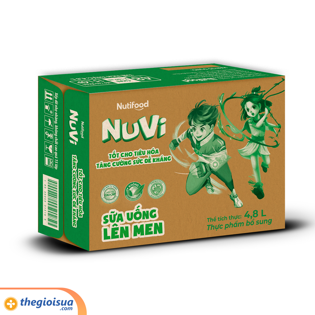 NuVi Sữa Uống Lên Men được lên men tự nhiên từ chủng men cao cấp Châu Âu, cung cấp chất xơ hoà tan Prebiotics giúp nuôi dưỡng các lợi khuẩn trong đường ruột hỗ trợ cho hệ tiêu hoá khỏe mạnh, bổ sung Vitamin A & D3 hỗ trợ tăng cường miễn dịch cơ thể