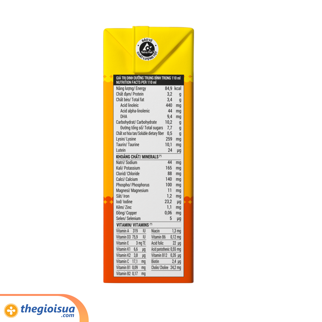 Công thức đặc chế hợp thể trạng trẻ Việt, đến 36 dưỡng chất chuyên biệt hỗ trợ nhu cầu cần thiết của trẻ: lên ký khỏe, cao lên rõ, tăng đề kháng, hỗ trợ hoàn thiện não bộ. Đạt Giải thưởng khắt khe Purity Award của Clean Label Project từ Mỹ với hơn 200 lượt kiểm nghiệm độ an toàn tinh khiết.
