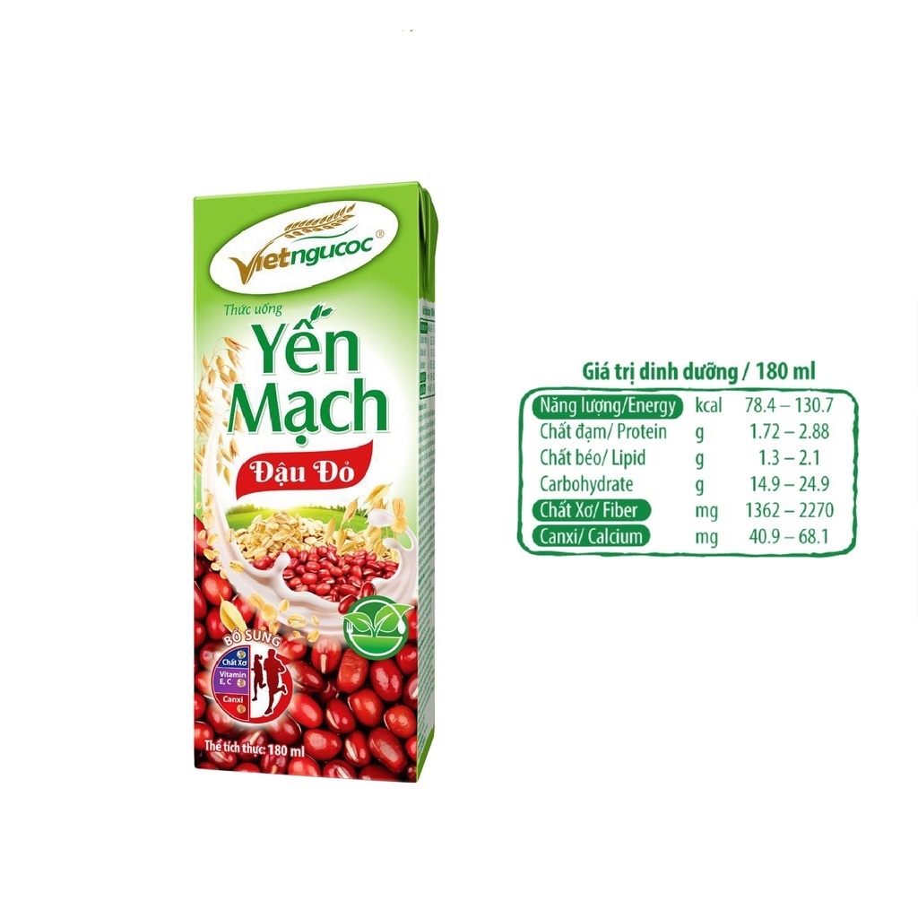 Thức uống Yến mạch đậu đỏ Việt Ngũ Cốc 180ml hương thơm bổ dưỡng, giữ trọn dinh dưỡng và chất xơ tự nhiên từ các loại hạt quý.