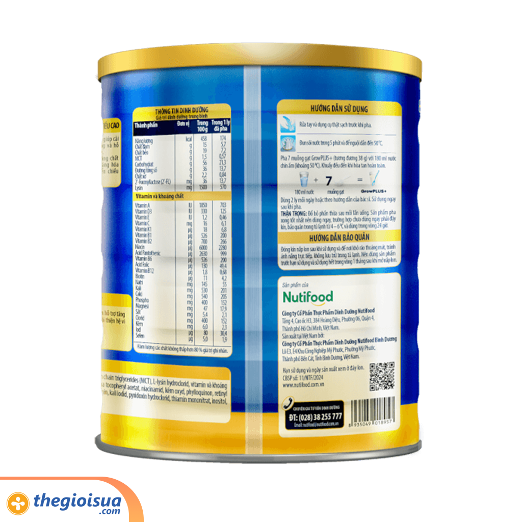 - 1 lon Sữa bột Nuti Grow PLUS+ cho bé từ 2 tuổi trở lên (Xanh) Lon 1,5kg pha được khoảng 40 ly Grow Plus+ mỗi ly 200ml. Sử dụng ngay sau khi pha.
