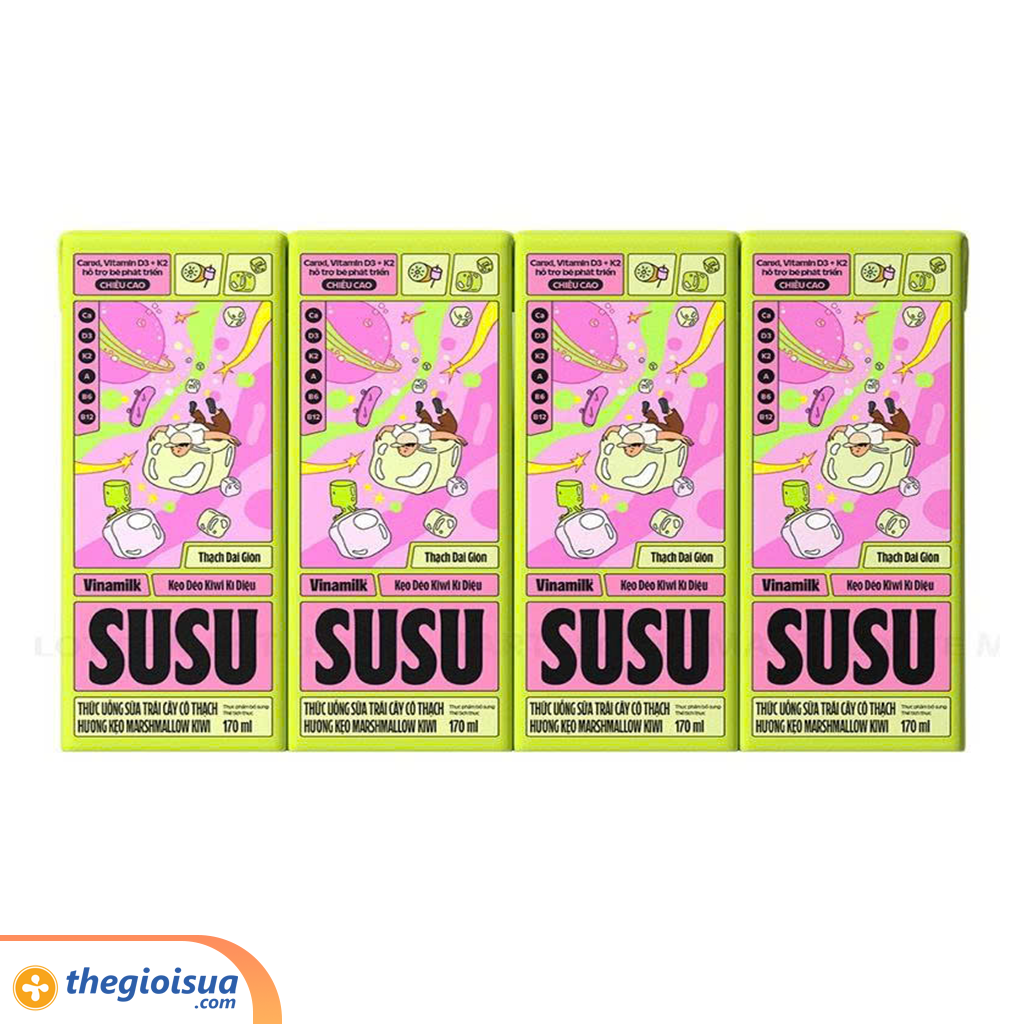 Thức uống trái cây hương kẹo marshmallow kiwi có thạch VNM SuSu hộp 170ml